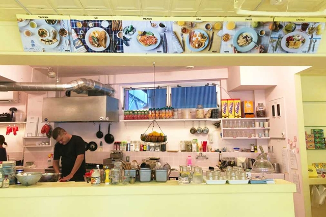 世界各国の朝食や、ドリンク、デザートがそろう、異国情緒たっぷりのレストランです。カリカリに焼いたベーコンと目玉焼き、たっぷりメープルシロップをかけたパンケーキのいわゆるザ・アメリカンな朝食のほか、イギリスとタイの朝食がレギュラーメニュー。さらに2カ月ごとに国が変わるスペシャルメニューが加わって、バリエーションも豊かです。各国の調味料や小物が並ぶ店内は、どことなく海外の食堂のようで、まるで海外旅行をしているような不思議な気分が味わえます。