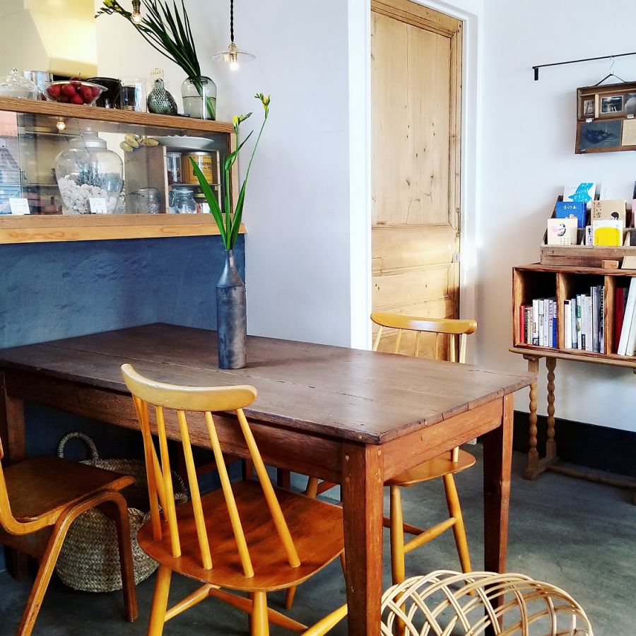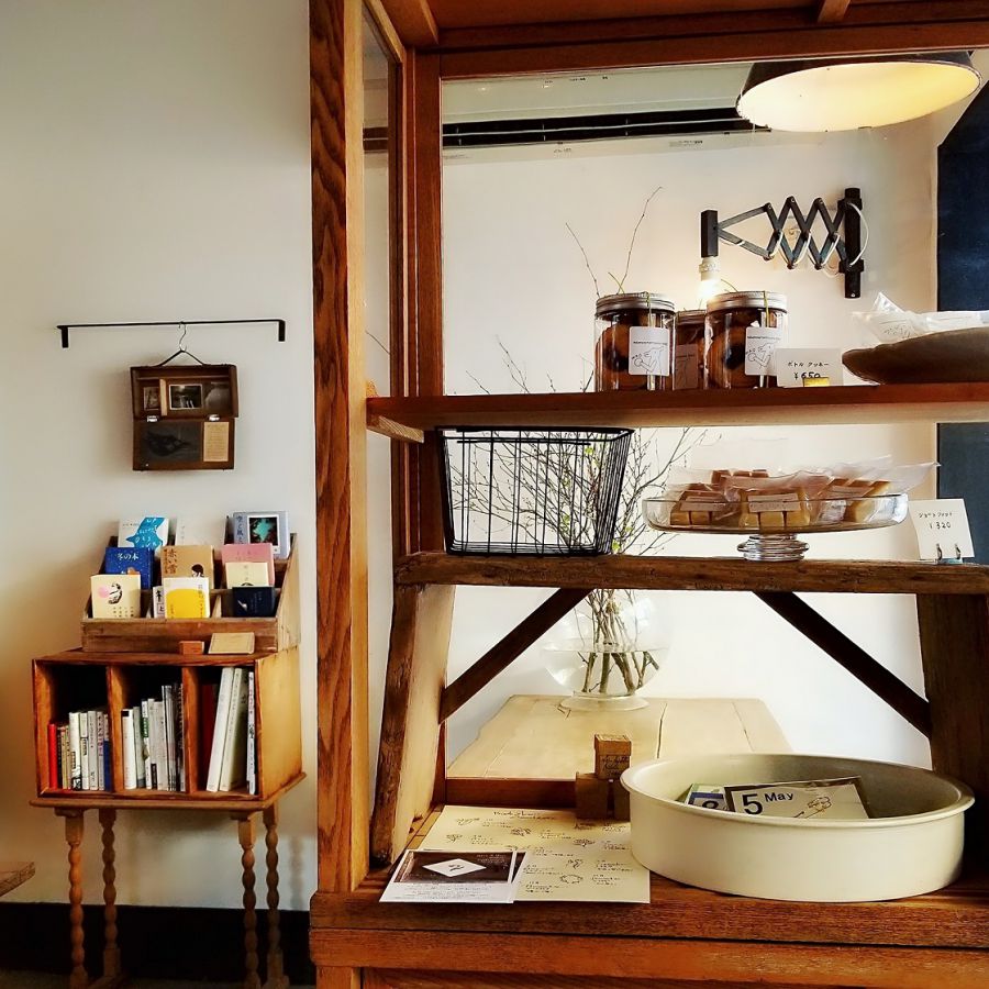 小さなお店で客席も少ないですが、なぜか落ち着く雰囲気。焼き菓子などのテイクアウトの方も多く利用されています。店名にもあるように、カフェだけでなく素敵な日用雑貨も飾られていて実際に購入もできます。