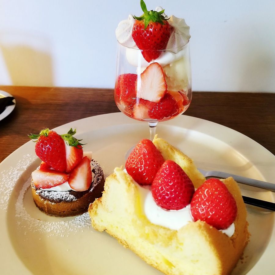 訪れるたびに違うものに出会えるワクワクも黒猫は楽しみにゃー♪ もちろんその日のメニューの内容を問い合わせしたら丁寧に教えてくれますよ。取材時は、いちごシーズン真っ盛りだったのでメニューはいちご尽くし。いちご好きの黒猫には嬉しいメニューラインナップ!