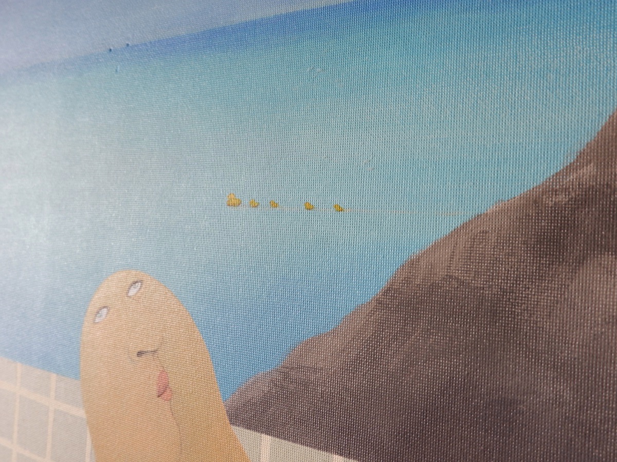 作品をよく見ると、大小さまざまなドットで描かれているのが分かります。明るくポップな絵柄は生命力に満ちあふれており、見ているだけで元気を与えてくれそうですね。