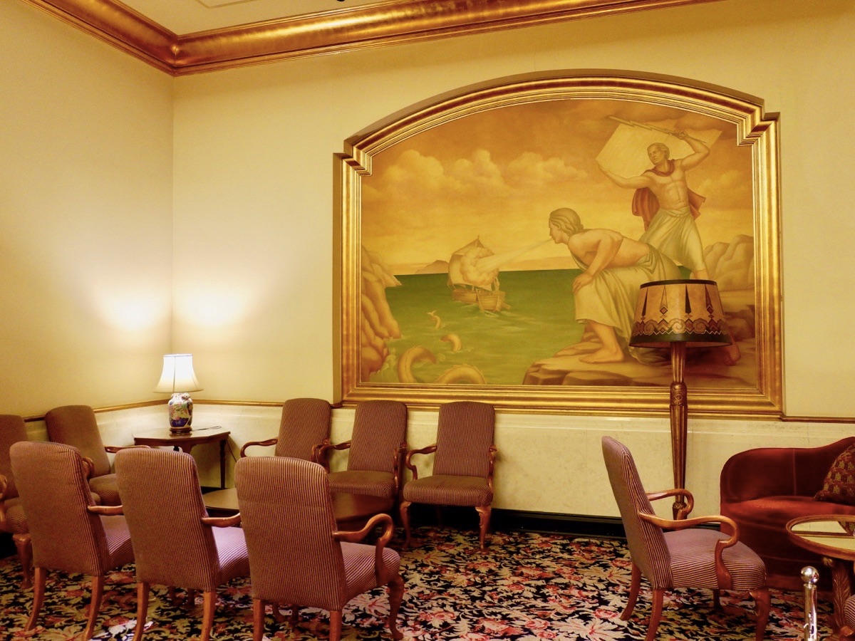レセプションに飾られた3枚の絵画は、米国人男性の画家が手がけたオリジナル作品。ギリシャ神話の大航海時代をモチーフに描かれたものだそう。ここだけ見るとまるで美術館にいるかのような気分になります。