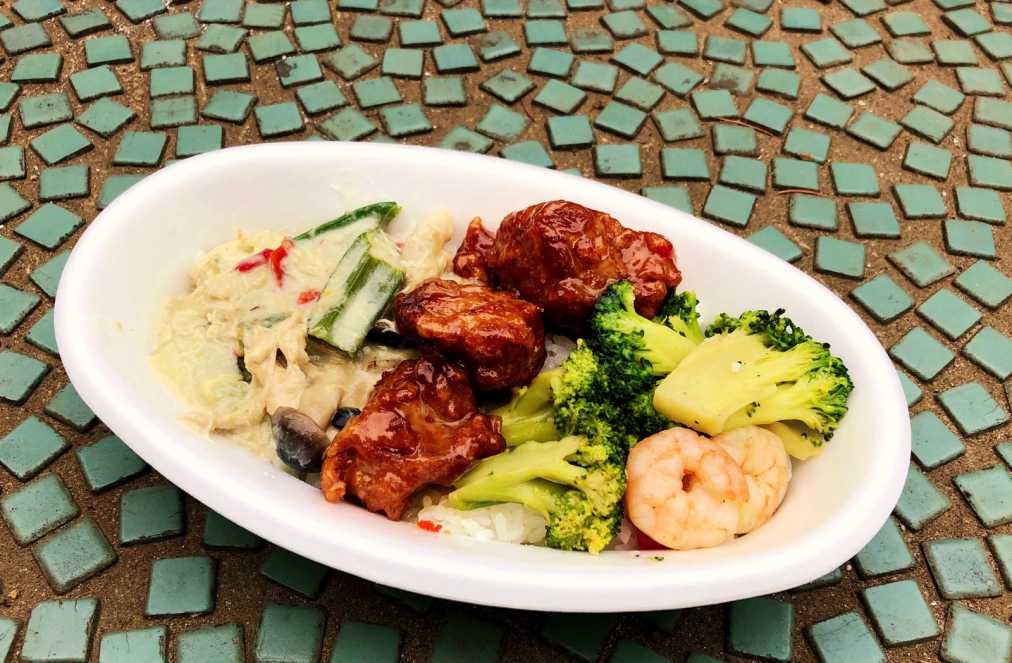 そんなデリの中から、1番人気の組み合わせの「タイカレー・グリーン」、「スイートチリマヨチキン」、「ブロッコリーとエビのアンチョビ炒め」をのせたお弁当をご紹介します。