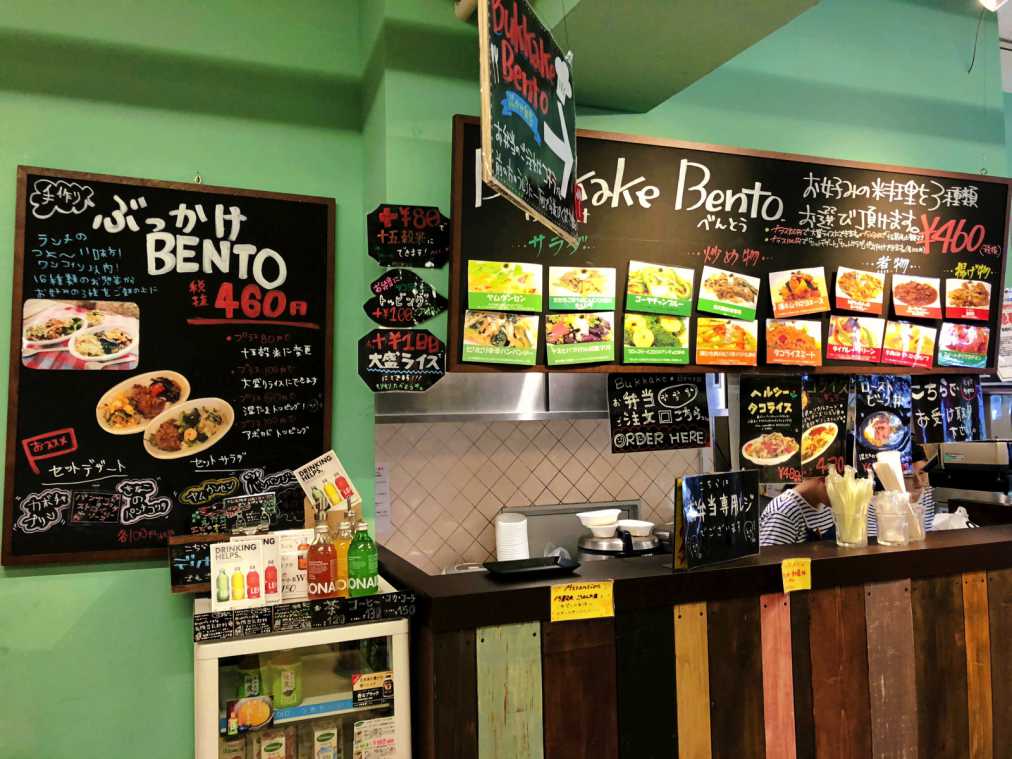 このお店で常に行列をなしているのが、お店で手作りされているというデリカコーナー!なかでも名物は「ぶっかけ弁当」(496円)!ショーケースに並ぶアジアンテイストのエスニックデリから3種類を選んで、ごはんの上にどーんとのせる、まさにぶっかけスタイルのお弁当です。
