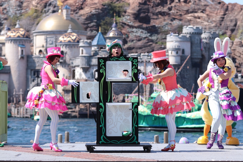 イースターを楽しむお祭りがテーマで歌やダンスなど、ディズニーの仲間たちとうさピヨが参加するコンテストを開催します。公演は1日3回。メディテレーニアンハーバーが会場です。