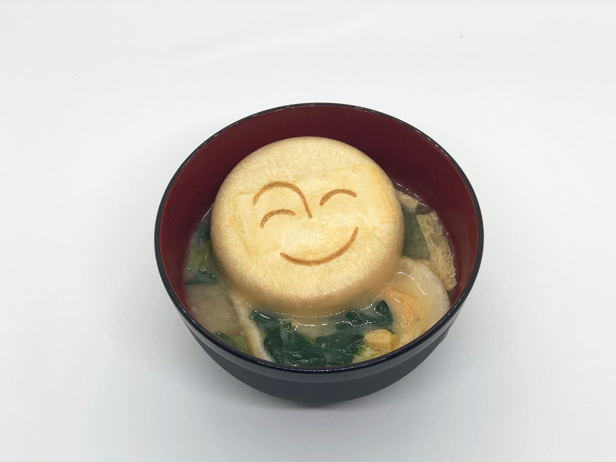 (3)シャキッと元気いっぱいな表情の「まろやか」:信州味噌をベースに讃岐白味噌をブレンドした豆腐となめこのお味噌汁