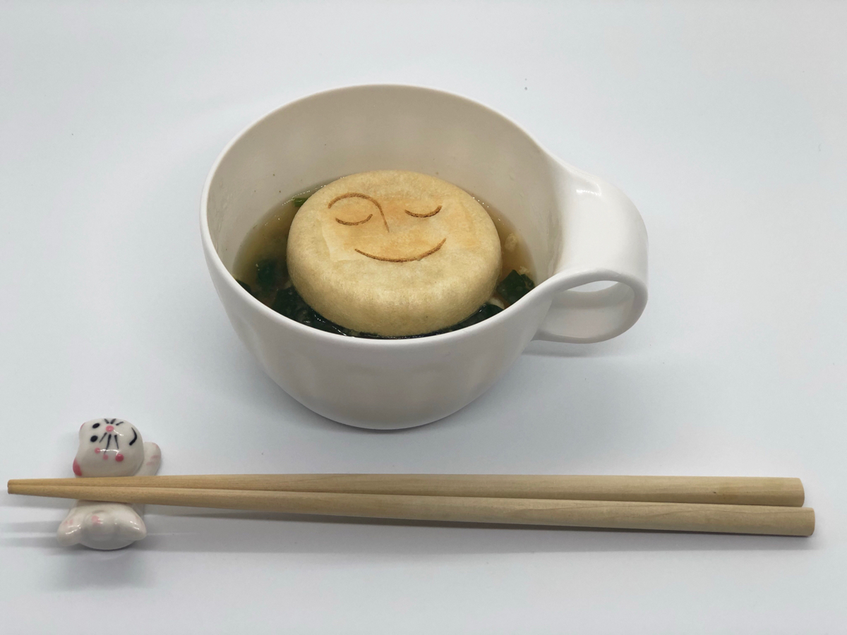 そんなときにおすすめなのがこちら。味噌汁専門店「美噌元(みそげん)」の「美噌汁最中」。写真をみてすぐにわかるように、最中にさまざまな表情が描かれていて、見ているだけでHappyな気持ちに!丸い最中の中にフリーズドライのお味噌汁が入っていて、お湯を注ぐだけで、すぐにおいしいお味噌汁ができあがります。