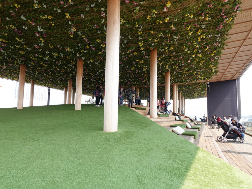 「おりづるタワー」では、2019年6月2日(日)までの期間限定で、「ソラチカピクニック」というイベントも実施中。床一面には人口の芝が。レジャーシートを敷いて食事を楽しむのもアリ、思いっきりゴロゴロするのもアリ。天候を気にすることなく、街中でピクニック気分を味わうことができます。