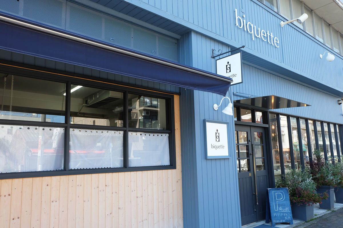 名古屋市営地下鉄「吹上駅」から徒歩5分ほど、大通り沿いにある青色の建物が印象的な「biquette(ビケット)」。こちらでは伝統的なフランス菓子を中心としたスイーツが揃い、その中でもキラキラとした可愛いタルトが魅力的!店内にはイートイン席もあるので、ティータイムを楽しむこともできます。