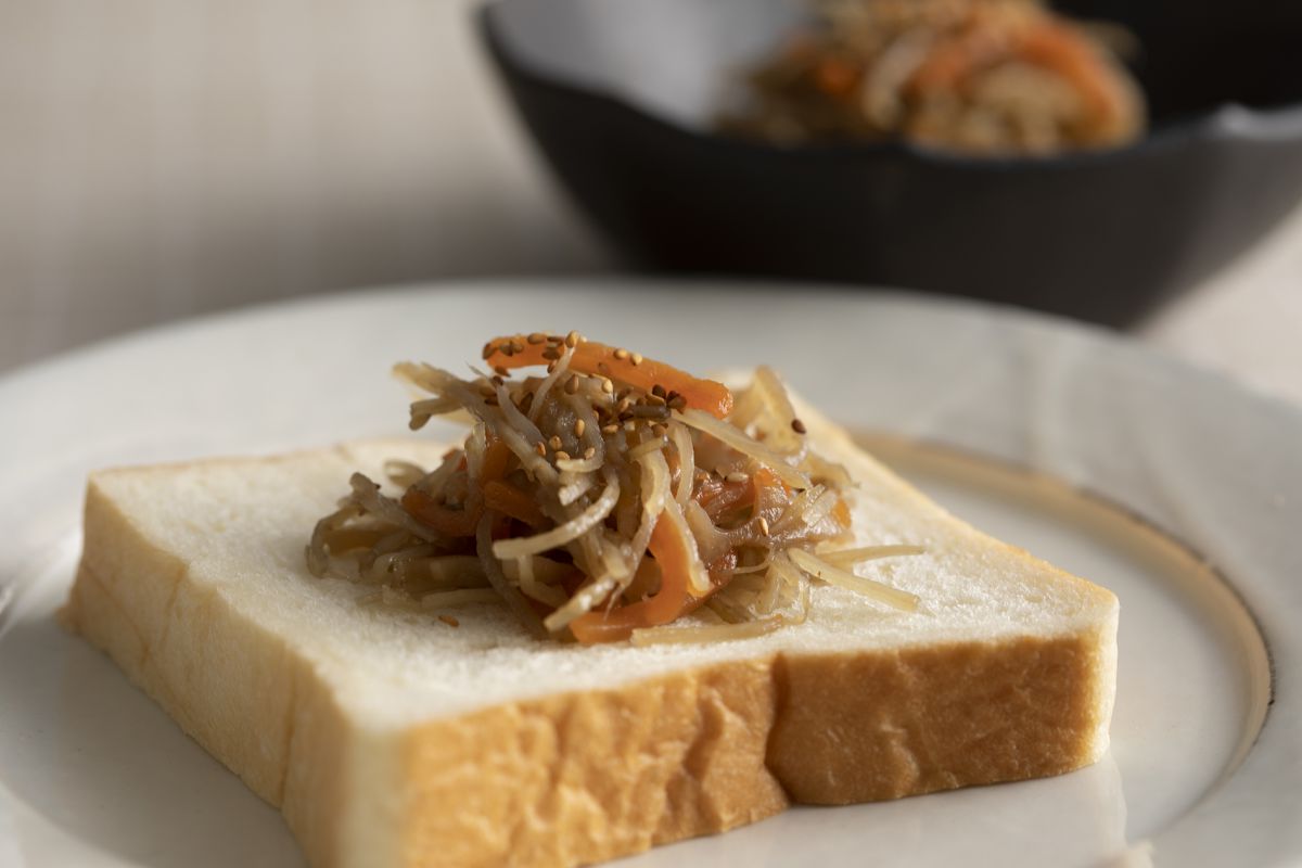 『銀座に志かわ』は「水にこだわる高級食パン」1種類で勝負。ほんのりとした甘さやモチモチした食感を堪能するには買ったその日にそのまま何も付けずに食べるのがおすすめ。1日目より水分が少し減った2日目以降はトーストすると、外はカリッと、香ばしさが加わり、違った楽しみ方ができます。さらに『銀座に志かわ』の食パンは和の食材との相性が抜群。きんぴらごぼうやなす味噌などの和惣菜、奈良漬けなどのお漬物や佃煮などおつまみにもよく合います。