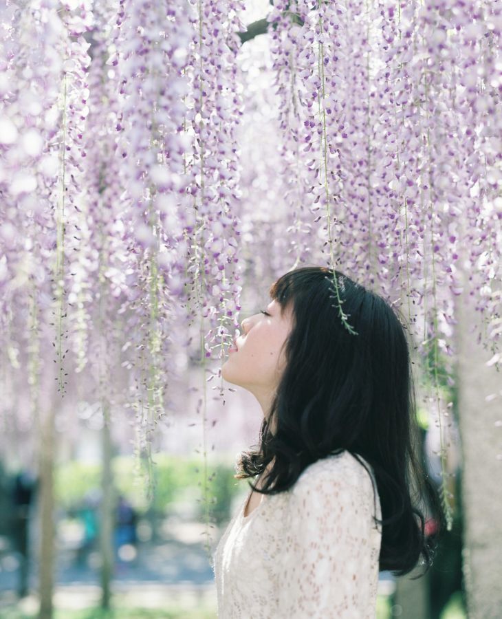 まるで、紫のシャワーを浴びているようにも見えるこの写真。滋賀県草津市にある「三大神社」の藤は、“砂擦りの藤”としても有名で、長いときは2mの高さから地面に擦れるほどの長さまで咲きます。