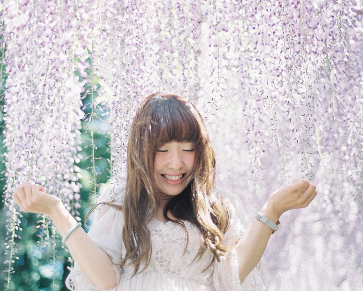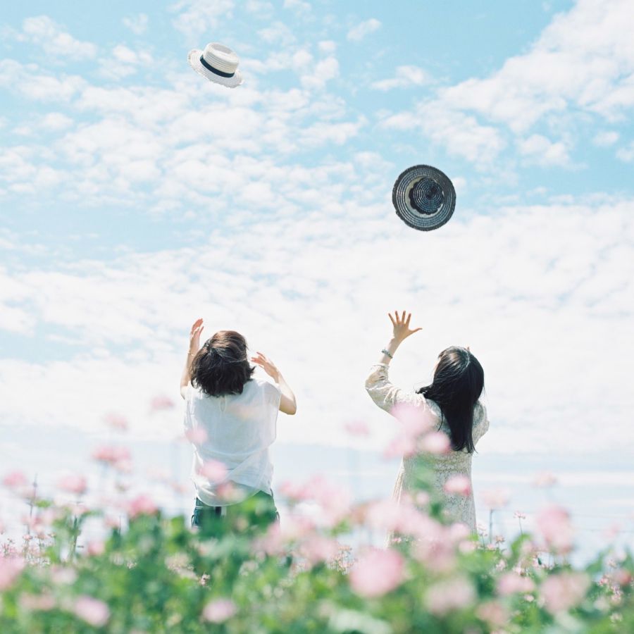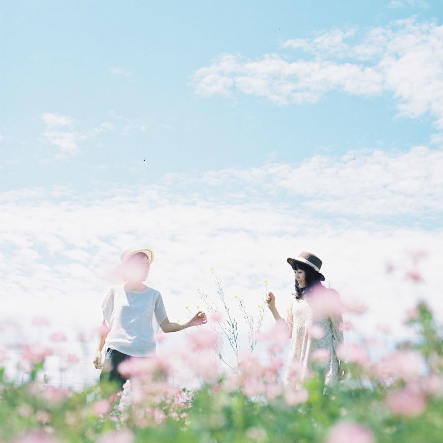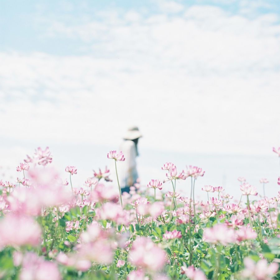レンゲ畑と青空はとても相性がいいので、一緒に撮りたいですよね。手前にレンゲをもってきて奥に人に入ってもらうと、こんな感じでかわいく撮れますよ。