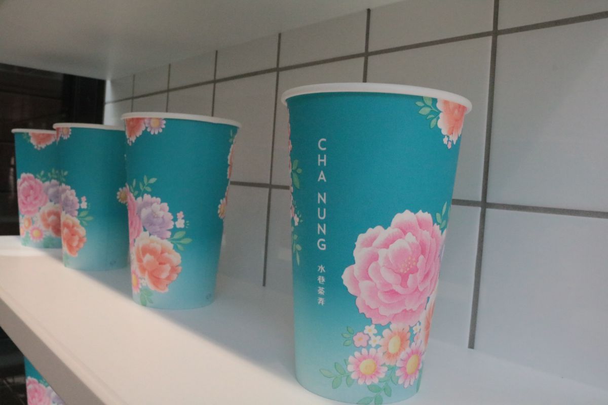 タピオカティーとミルクティーとお茶(ブラックティー、ジャスミングリーンティー、ウーロンティー)、レモングリーンティー、レモンブラックティーはホットのオーダーも可能。台湾でおなじみの客家花布をモチーフにしたカップで提供してくれるそう。台湾好き女子にはたまりませんね。