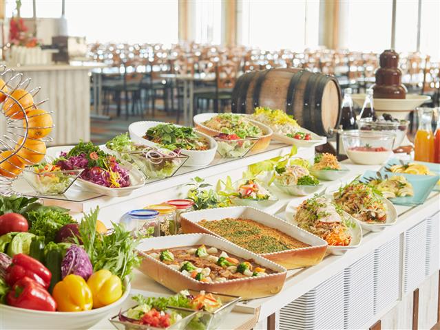 テラスから青空と緑の絶景をひとりじめ!高原野菜たっぷりのビュッフェをどうぞ