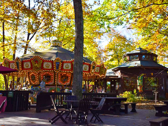 森の中のメリーゴーラウンドがメルヘンチック!萌木の村のカフェでひと休み