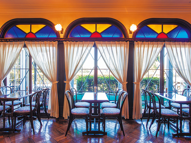昭和42年(1967)に開館した「山手十番館」は、1階がティールーム、2階がフレンチレストランとして営業中。ガス灯やステンドグラス、ランプシェードなどのインテリアがレトロで、明治時代の雰囲気に浸ることができます。昔ながらのレシピが生きるプリン・ア・ラ・モードなど、定番スイーツをいただけば、さらに気分が盛り上がります。