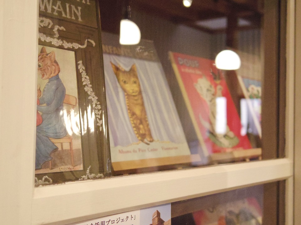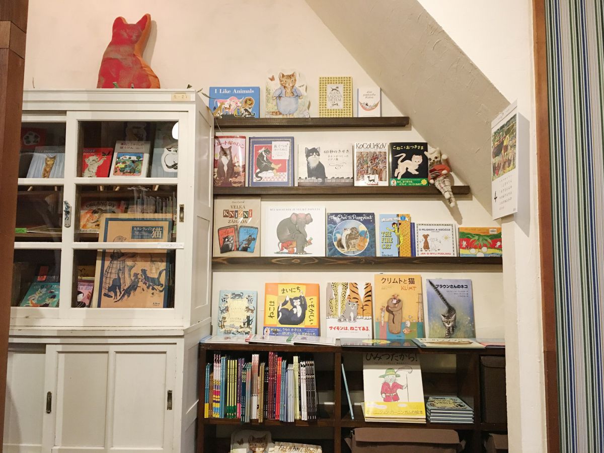 レトロな什器に納まる、猫好き店主厳選の猫本