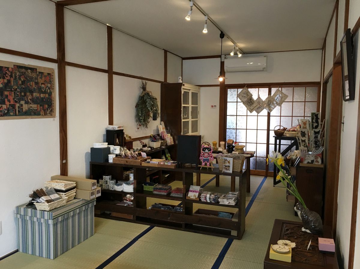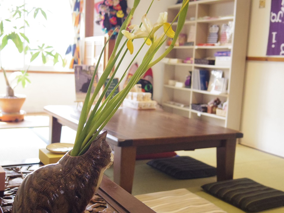 2階は猫雑貨の販売スペースになっています。細長い形状の和室で、昭和感満載。友達のアパートに遊びに来たような気分でくつろげます。