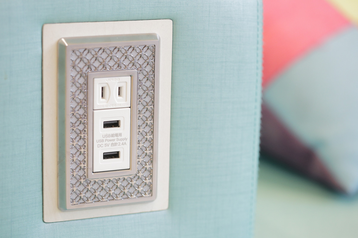 コンセントにいたるまで、とにかくラブリー。USBから直接給電もできます。