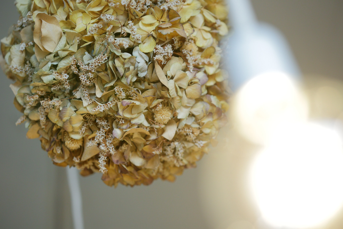 天井に飾られたドライフラワーや…