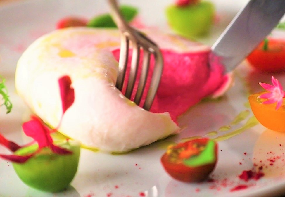 ほかのチーズレストランでは食べられない、こだわりのチーズ料理を提供するレストラン「Cheese Tavern CASCINA(チーズタバーンカシーナ)」に、できたての手作りモッツァレラチーズと“ピンク”ブラータが登場。「世界初!?自家製ピンクブラータ」は、賞味期限1日という超プレミアムチーズ「ストラチャテッラ」と、できたてのモッツァレラチーズを使用して作られたメニューです。