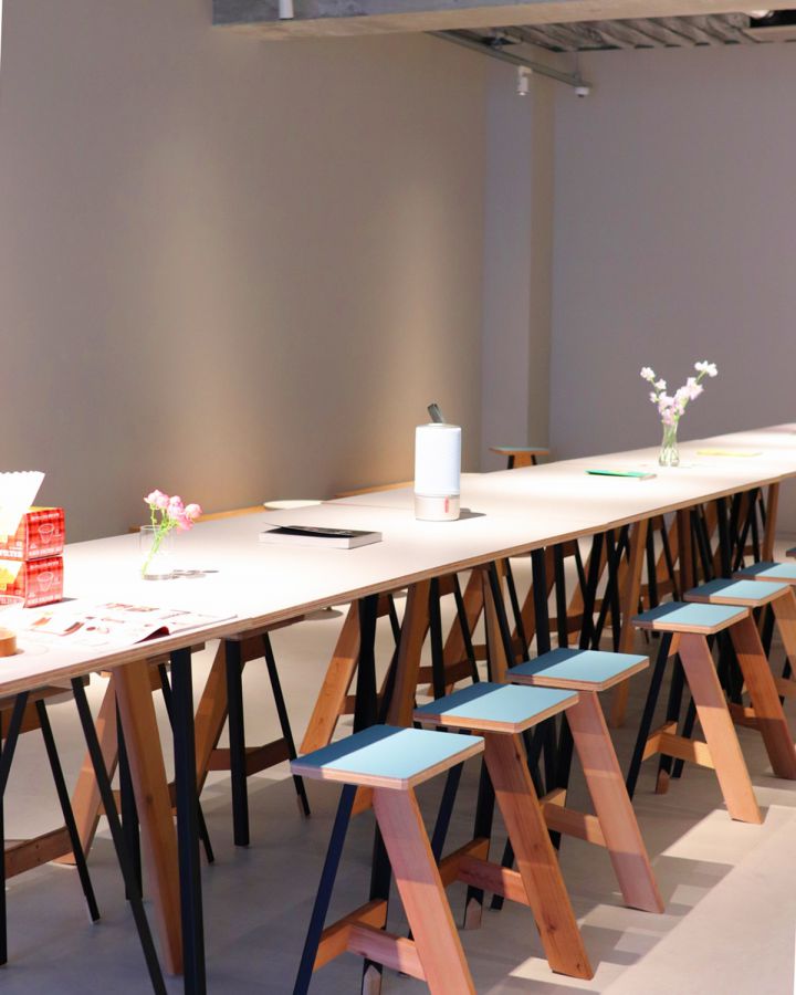 この復興を目指すという考え方に「dotcom」が共感。コラボレーションしてつくられた家具が使用されています。