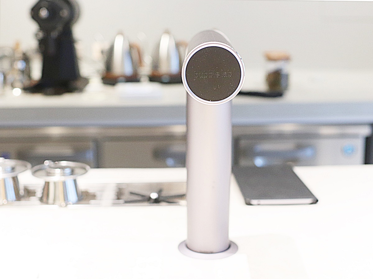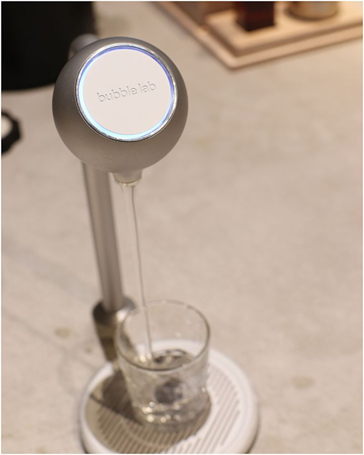 そして、ぜひ体験してほしいのがこのウォーターサーバー。セルフで取りに行くお水はこの「Drop」マシーンで。近未来的でわくわくします。