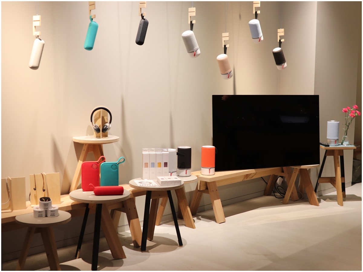 店内には人気の高音質Bluetoothスピーカー「LIBRATONE」もあります。さまざまな形でライフスタイルの提案をしてくれるのが面白いですね。