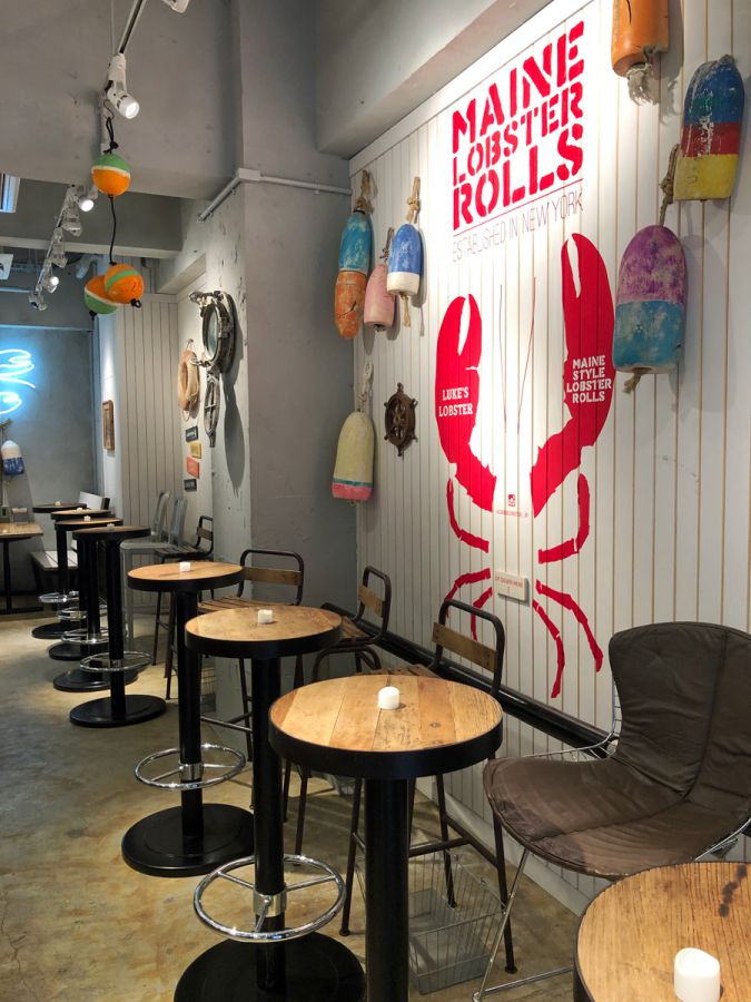 銀座店は国内の店舗でいちばん広い設計とのこと。店内はロブスターにちなんで、港をイメージしたカジュアルなインテリアでまとめられています。これまでの店舗にはなかったボックス席もあって、ゆっくりできそうです!
