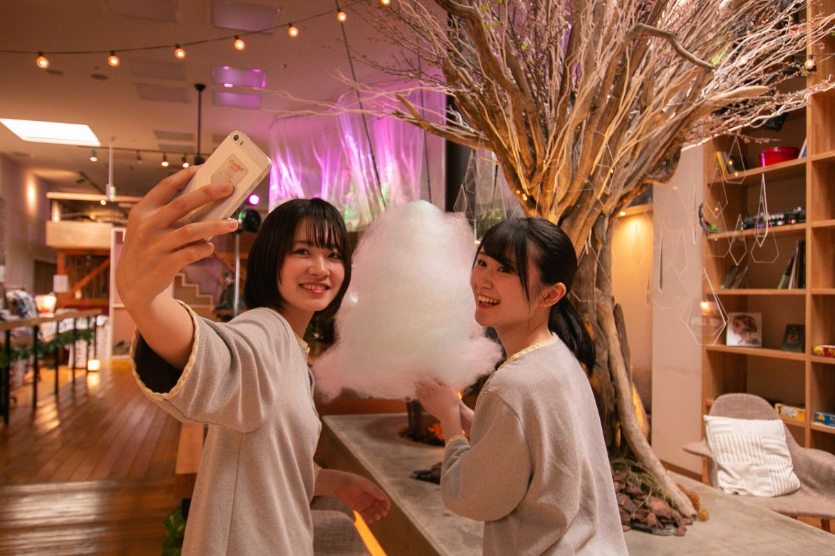 ふわふわ、モコモコの巨大わたあめが手作りできるワークショップが、期間中の15時30分と18時30分に1日2回(各回10人)、480円で体験できます。赤や青、黄色のザラメを組み合わせて、大きなイースターエッグのようなわたあめを目指してトライ。