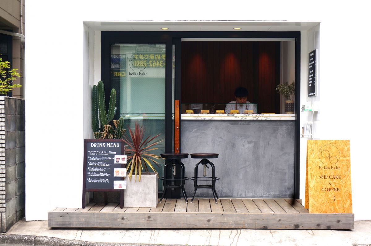 中目黒駅から3分ほど歩くと見えてくる小さな看板。「米粉CAKE&COFFEE」と書かれたその先にあるのは米粉100%の生地で作るジャムサンドケーキとコールドブリューコーヒーのお店「beika bake(ベイカ ベイク)」です。