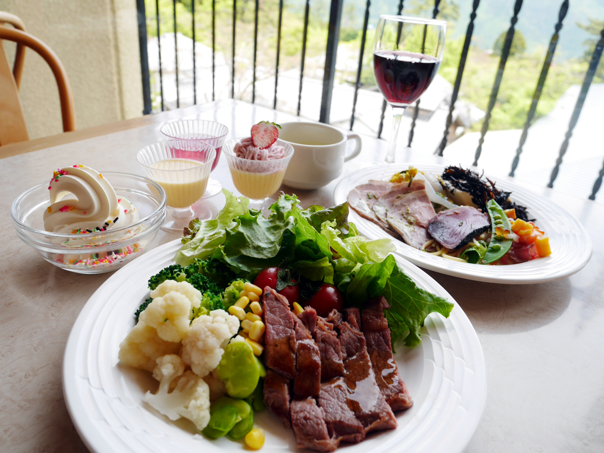 そのほか、グルメスポットも充実。お腹がペコペコなときは、「箱根小涌園 大文字テラス」のバイキングがおすすめ。目の前で焼いてくれるステーキや点心、蕎麦にスイーツまで約60種類のメニューが並びます。アルコールも飲めますよ。