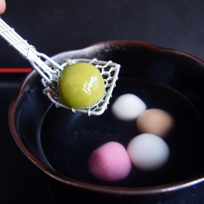 かわいい4色の湯あがり白玉は、お湯に浸かった状態で提供されるので、熱々でふわふわ!もっちりとした白玉に、きな粉のシロップをかけたり、あんこを乗せたりして、それだけで食べるのもいいですね。