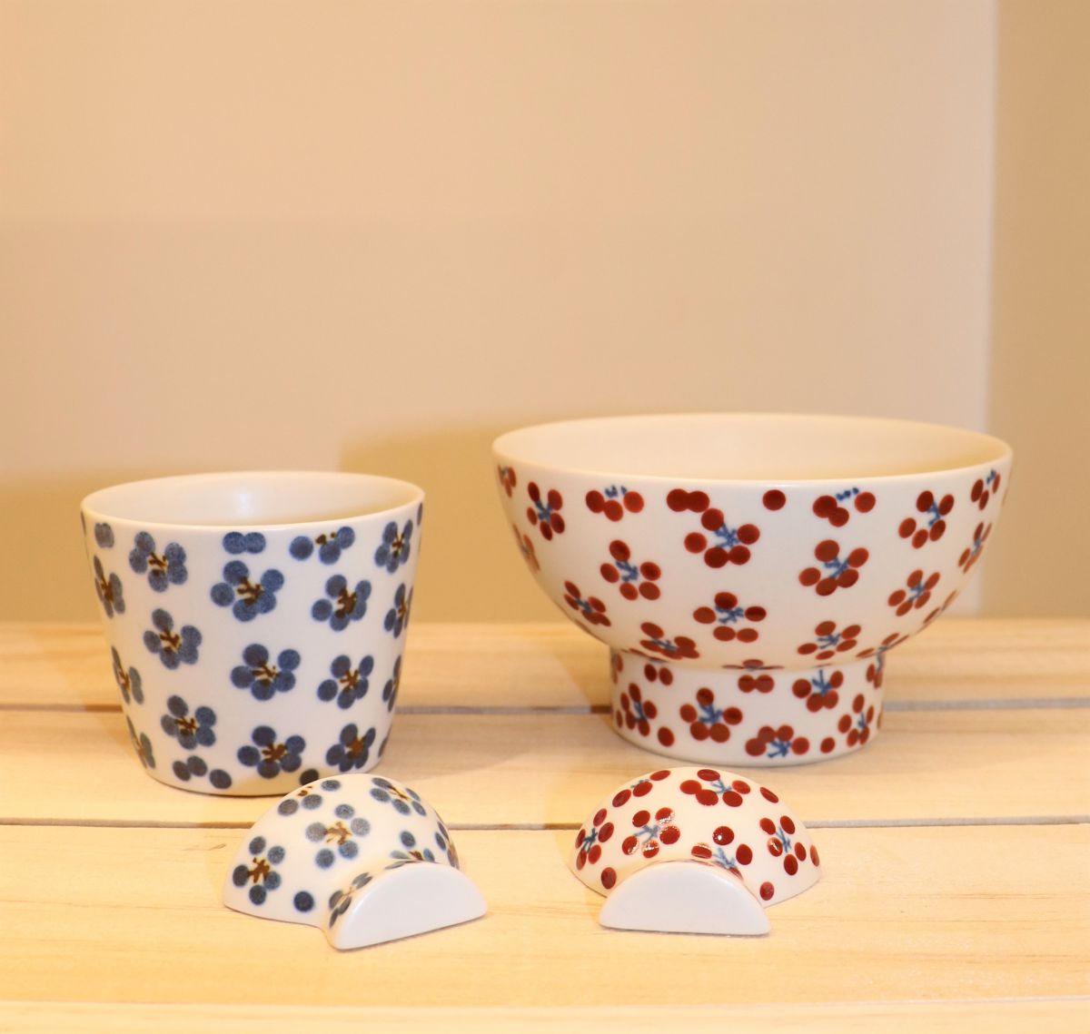 和柄をポップにアレンジした「すこし屋 松田窯」の器も。「茶椀型の箸置き」1個756円とセットで使いたいですね!