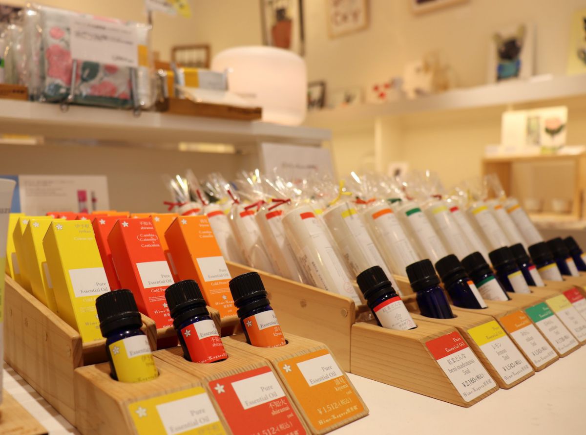 伊織の店内にふんわりといい香りが漂っているのは、柑橘系の「媛香蔵 エッセンシャルオイル」1本1512円~をたいているから。特に人気が高いのは、愛媛らしい伊予柑の香りだそうです。