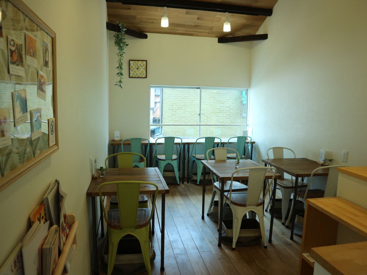 1階でオーダーとお会計をしたら2階へ。おうち教室をしていたので、カフェも「おうち」がテーマ。店主の「好き」を集めたインテリアは落ち着いたトーンで、癒されます。