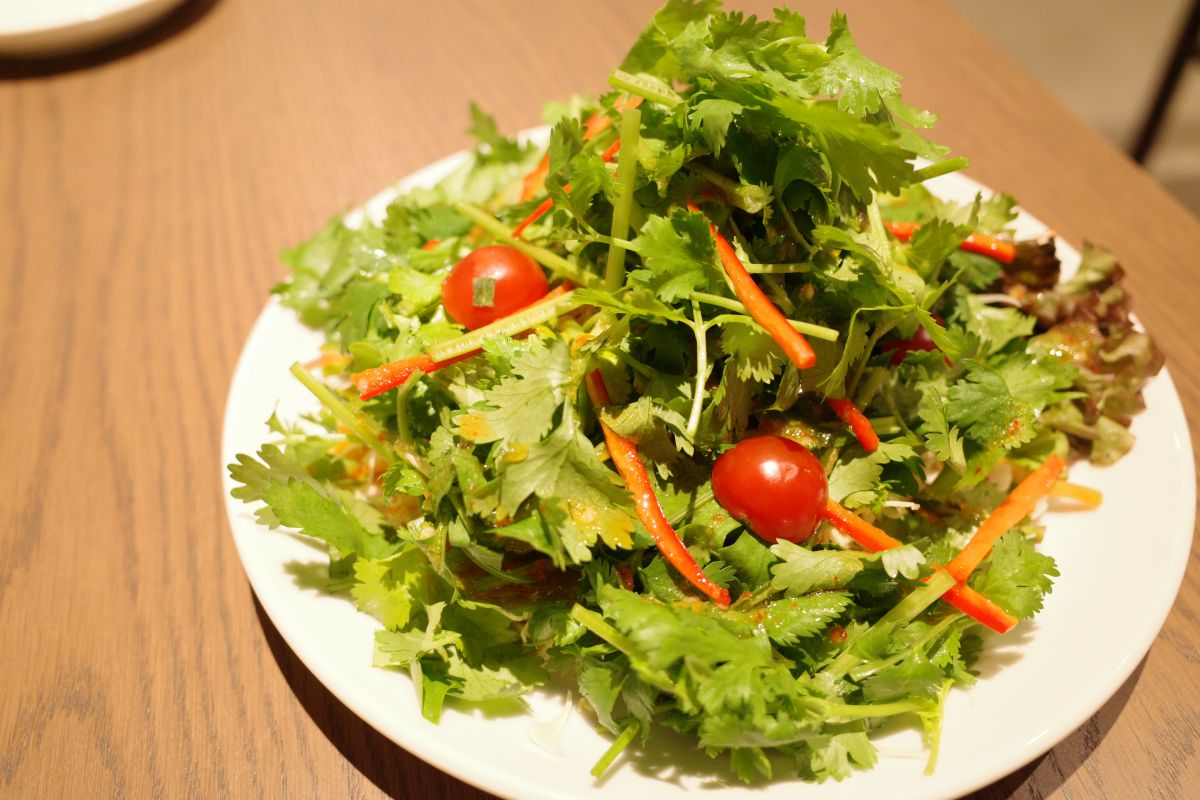 まずは前菜からスタート。最初に登場したのは、パクチー山盛りの「パクサラ」です。