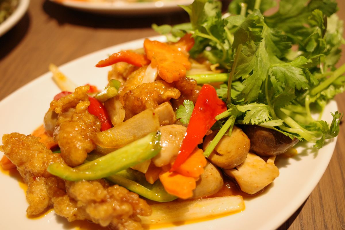 続いて「ガイパットトムヤムパクチー」。鶏肉とレモングラスとパクチーのトムヤム炒めです。