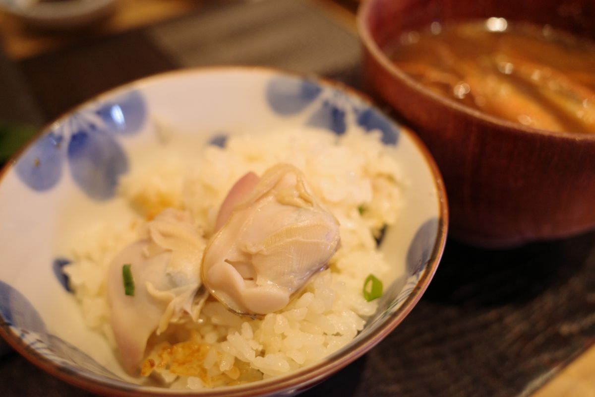 下のご飯が見えなくなるくらいに、たっぷりと敷き詰められた蛤。釜飯の具材は日によって変わるので、お楽しみに。
