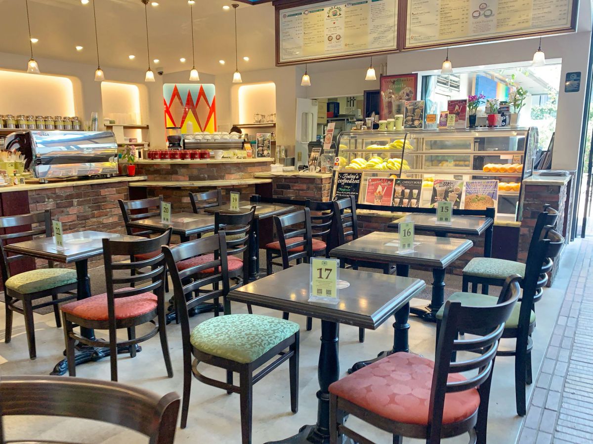 席についたらテーブルに置いてある番号札をもってレジに行き、注文とお会計をすませましょう。