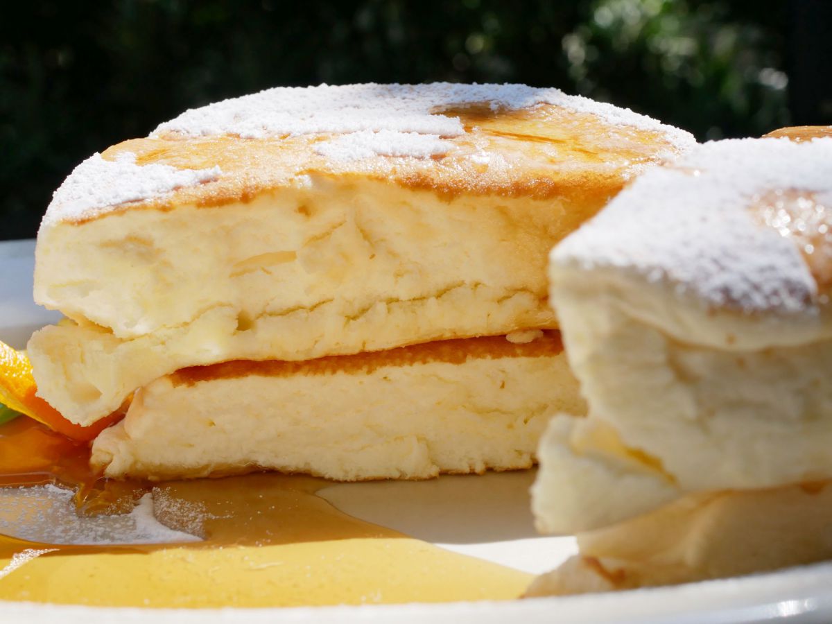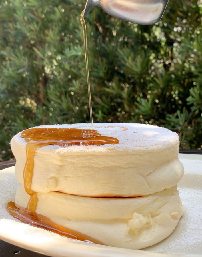 エアリー食感のふわふわパンケーキにメープルシロップをしみこませて思いきりほおばれば、まさに至福のとき。