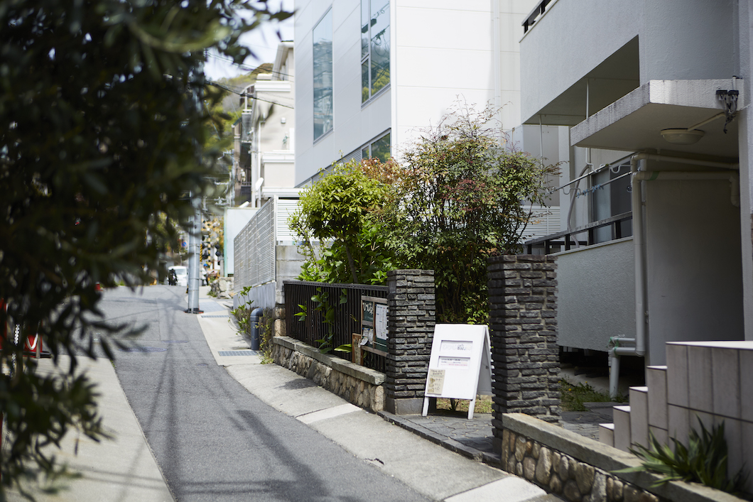 JR摂津本山駅から徒歩約5分、阪急岡本駅から徒歩約2分のところ、大通りを1本入った細い路地にあるマンションの2階に「ひつじ茶房」はあります。