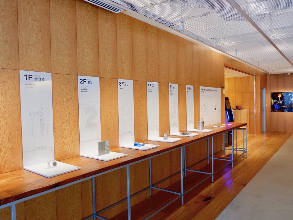 こちらには各階のフロアサインがパネルで展示されており、まるで小さな美術館のよう!さらにオーディオガイドアプリの「ON THE TRIP」とも連携しているため、自分のスマホで展示物にまつわるストーリーや蒲田周辺のガイドを4ヶ国語で聞くことができるんです。