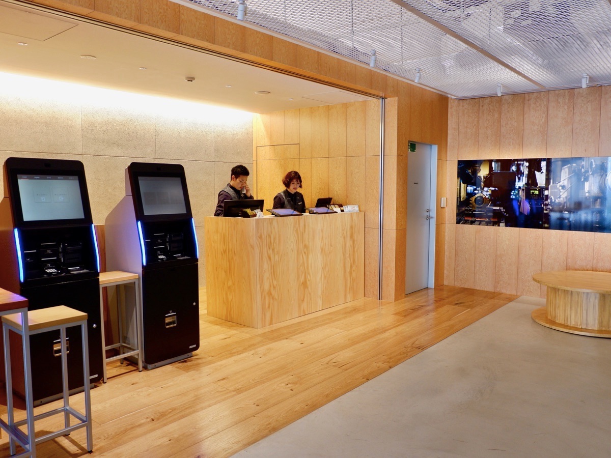 フロントにはスタッフの隣に自動チェックイン機を2台設置。支払い方法は、現金とクレジットカードから選べるので便利です。