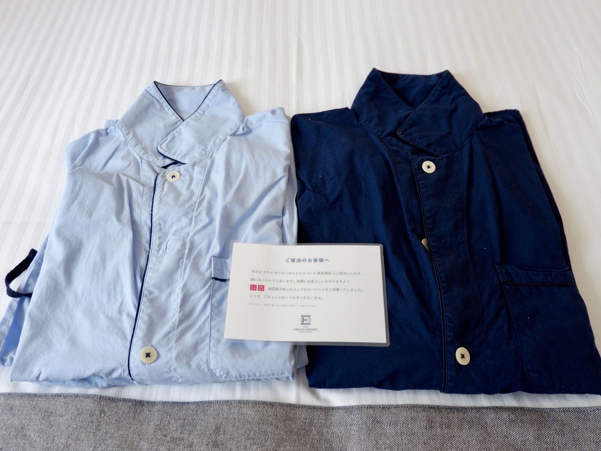 館内着にはUNIQLOのパジャマを用意。とても着心地がよいのでリラックスして滞在できますよ。