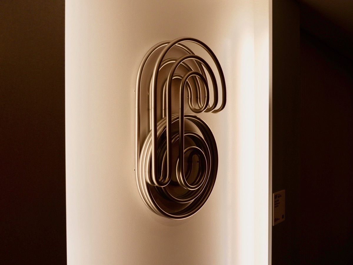 6階のテーマは「曲げる」。こちらは「株式会社平川製作所」が手がけています。1本のパイプをひずみなく曲げるのは難しいのだそうです!パイプ溶接は「有限会社五城熔接工業所」、表面処理は「株式会社浩伸技研」が担当しており、優れた技術が組み合わさった作品となっています。