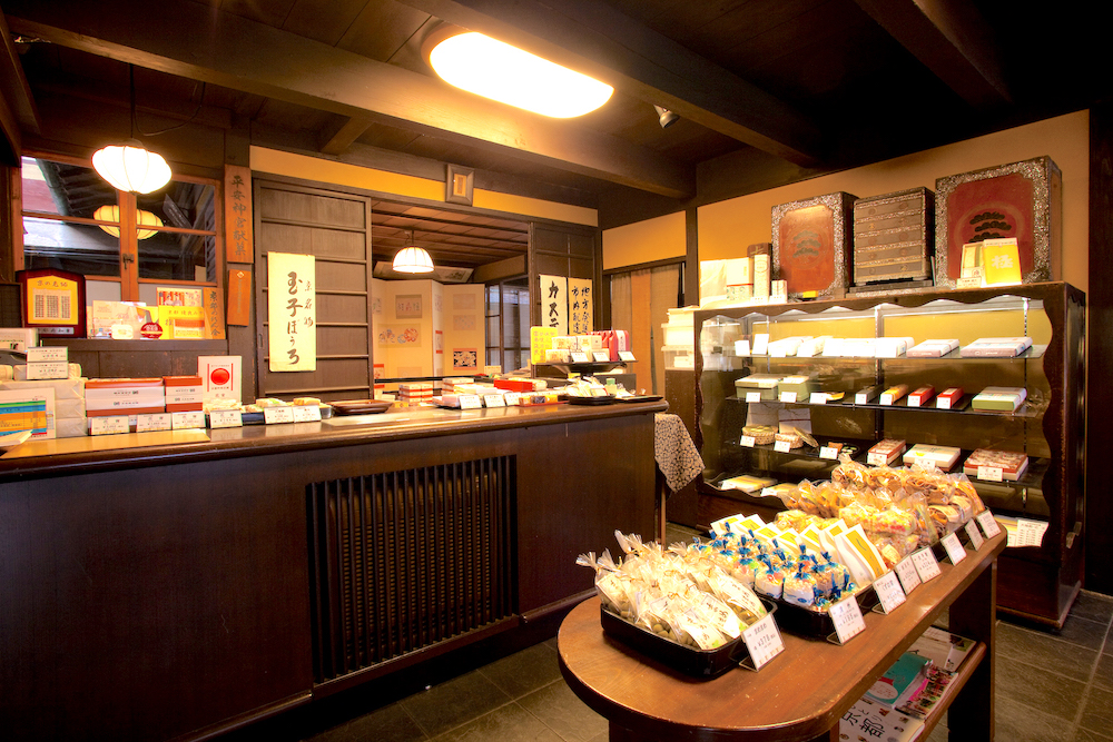 足を踏み入れるのも躊躇するほどの立派な店構えですが、のれんをくぐれば、手頃な価格帯のお菓子が並びます。
