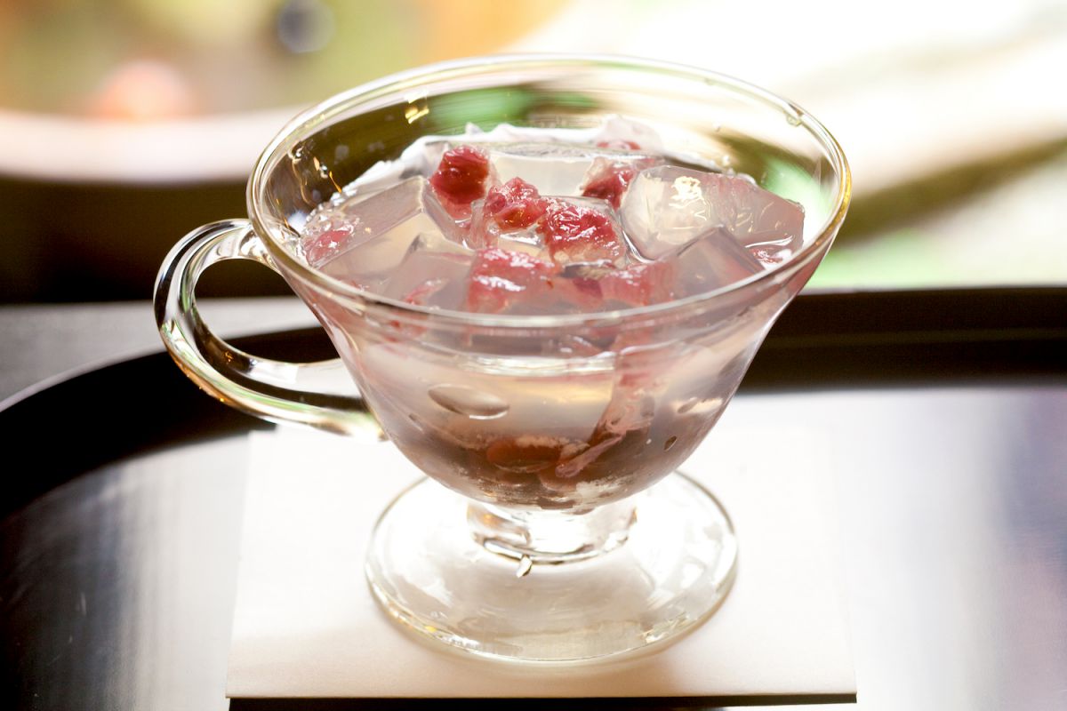 初めてメニューに登場した「琥珀流し」は、4月の桜蜜。塩漬けにした桜の香りまで楽しめる、はんなりと美しい桜蜜は、春の訪れの喜びを表現しているようです。