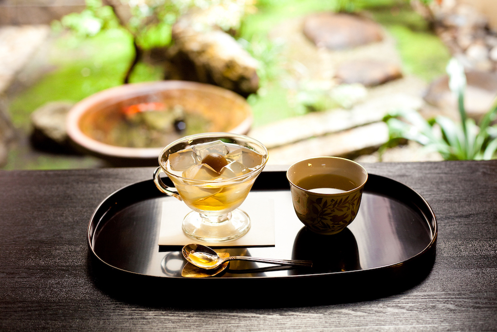 儚げで美しく、ひんやりと喉を通る和スイーツ「琥珀流し」が食べられるのは、なんと大政奉還の2年前に建てられたという、歴史ある和菓子屋の一角。季節が変わるたびに訪れるという人も多い人気店「大極殿本舗 六角店 栖園」の奥深さに迫ります。