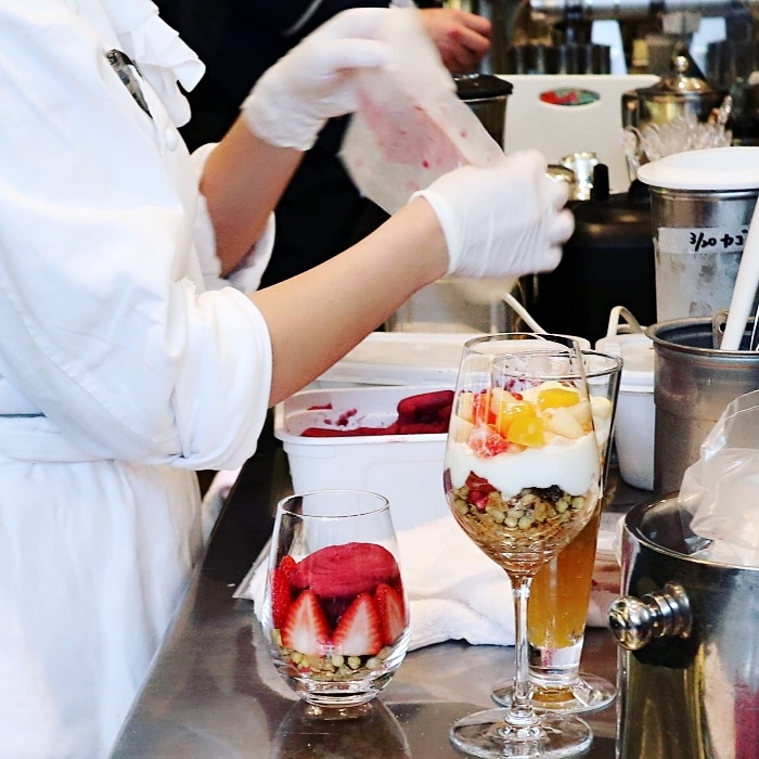 テーブル席もよいですが、カウンターでパフェが作られているのを眺めるのも楽しいですよ。