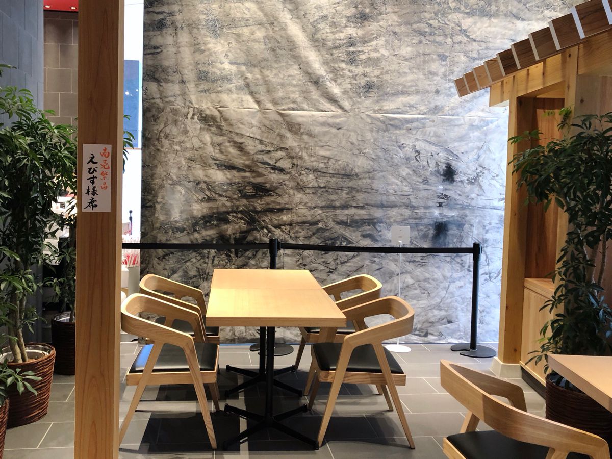 店内の角のこの座席は「えびす様席」。ちょうどこの場所の真裏に「えびす様ご尊像」があることから、「えびす様」の商売繁盛パワーを最も受けることができる座席なんだとか。商談や打ち合わせなどに利用すると、よいことがあるかもしれませんね!